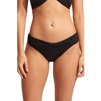 Seafolly Women's Twist Band Hipster Full Coverage Bikini Bottom Swimsuit Separates, Eco Collective Black, 14