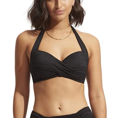 Seafolly Women's Twist Front Soft Cup Halter Bikini Top Swimsuit Separates, Eco Collective Black, 10
