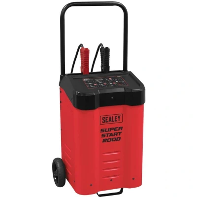General description Sealey SUPERSTART200D is an automatic battery charger and starter designed for charging and boosting a variety of batteries including AGM (stop/start), GEL, Lead Acid, and lithium LiFePo4 batteries up to 600Ah. It features an intuitive digital display and a 200A peak engine start function, making it ideal for use in workshops. Technical specifications Model No.: SUPERSTART200D Charging capacity: Up to 600Ah Peak engine start: 200A Charging rates: Three rates for both 12V and 24V systems Other information Features overcharge, short circuit, and reverse polarity protection Dedicated charging programs for AGM, GEL, conventional Lead Acid, and lithium batteries with fully automated charging algorithms Portable design with handle for easy maneuverability around the workshop