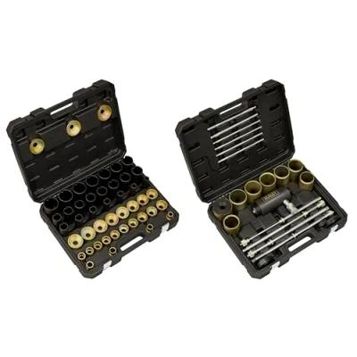INSTALLATION/REMOVAL - Suspension bushes and bearings on passenger and commercial vehicles. POWERFUL 18 TONNE HYDRAULIC CYLINDER - Hydraulic pump and hose not included. COMPATIBLE - With Sealey Air Hydraulic Pump RE109, Hydraulic Pump RE110 and Hydraulic Hose RE111. PROTECTS - The bush uses parallel working tension elements. SLEEVE VIEWING WINDOW – To gauge the correct fitment of the bush or bearing. APPLICATION: - 26-82mm press sleeves in 2mm increments and an 85/87mm press sleeve. INCLUDES - Four force screws and three press sleeve adaptors. SUPPLIED IN TWO STORAGE CASES - For easy transportation.