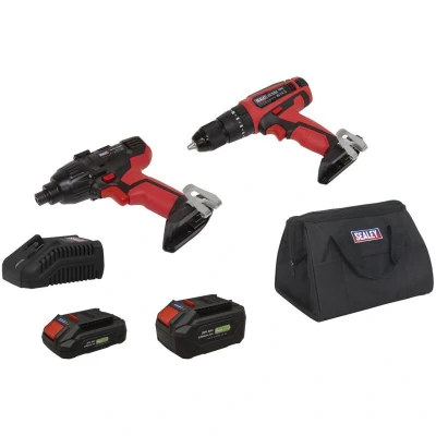 Sealey 2 X SV20 Series Cordless Power EU Tool Kit 20V Euro Plug Batteries
