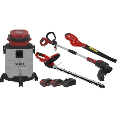 This comprehensive Sealey Garden Power Tool Kit includes everything you need to maintain your garden in pristine condition. The kit consists of four essential tools: the CS20V Cordless Strimmer, CB20V Cordless Leaf Blower, CHT20V Cordless Hedge Trimmer, and the PC20SD20V 20-litre Wet & Dry Vacuum Cleaner. Each of these tools is designed to perform effectively, ensuring you can get all your garden jobs done efficiently.