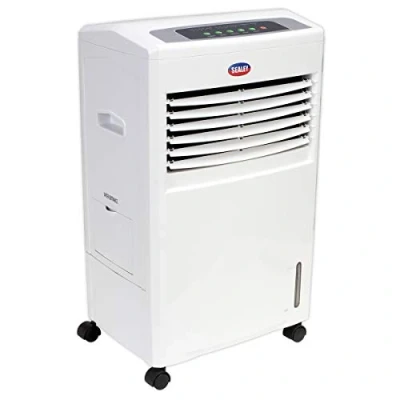 AmazonFeatures:Multifunction unit comprising air cooler, heater, humidifier and air purifier 3-Speed fan, adjustable airflow direction and timer Refrigerant-free cooling by evaporating water, which can be enhanced by adding ice Fan-assisted heating function with two settings 1000W2000W Air purification by negative ion generation and activated carbon filter, Weight: 17.0637790788 pounds, Manufacturer: Sealey