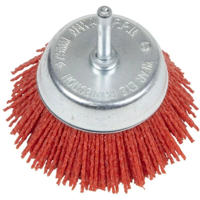 General description The Sealey 75mm Nylon Filament Cup Brush features an abrasive grain specifically designed for non-sparking applications. Its long lifespan is attributed to the specially designed nylon filament material, making it ideal for surface treatment, deburring, and cleaning applications on metal, wood, and other surfaces. Technical specifications Brush diameter: 75mm Shaft size: Standard 6mm Compatibility and accessories Designed to fit any standard sized drill chuck.