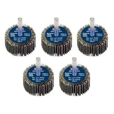Sealey Abrasive Flap Wheel Ø40 x 20mm Ø6mm Shaft Assorted Grit Pack of 5