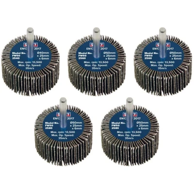 Sealey Abrasive Flap Wheel Ø50 x 25mm Ø6mm Shaft Assorted Grit Pack of 5
