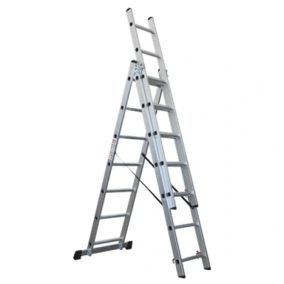 • Aluminium extension ladder manufactured to EN 131 standards.• Ideal for the tradesman, this ladder can be used as a 3-section or 2-section extension and as a single ladder, which is ideal for 2-person use.• Can be used as a step and extension step ladder where stability and height are needed.• Compact size for easy handling and storage.• Extends to 4.2m when used as a triple.Aluminium extension ladder manufactured to EN 131 standards. Ideal for the tradesman, this ladder can be used as a 3-section or 2-section extension and as a single ladder, which is ideal for 2-person use. Can be used as a step and extension step ladder where stability and height are needed. Compact size for easy handling and storage.• Aluminium extension ladder, manufactured to EN 131 standards. • Ideal for the tradesman, can be used as a single, double or triple extension ladder. • Extends to 4.2m when used as a triple. • Doubles as a step ladder. • Model No. ACL307Technical Specification:Maximum Capacity: 150kgMaximum Extension: 4.2mMaximum Reach: 5.1mMinimum Height: 2mNett Weight: 9.8kgTread Count: 3 x 7Dimensions: Length: 150mm x Height: 1990mmWeight: 9.675KgWarranty: 1 year