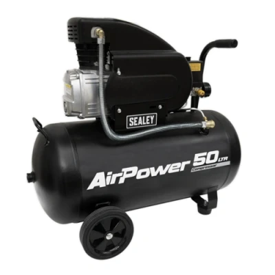 The Sealey Air Compressor 50L Direct Drive 2hp is expertly crafted for general-purpose workshop applications, providing the reliability and performance needed for a variety of tasks. Its robust design features an advanced aluminium cylinder head coupled with a cast iron cylinder, which enhances resistance to wear and extends the life of the unit.