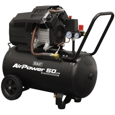 General description This Sealey SAC5002 Air Compressor features a 50L V-Twin oil-free direct drive system, making it ideal for applications requiring clean air delivery, such as paint spraying. The design minimizes the risk of oil contamination, thereby reducing maintenance costs and ensuring reliable performance in various workshop settings. Technical specifications Type: V-Twin pump Cylinders: Aluminium with cast iron liners Power: 3hp Tank capacity: 50L Other information Fitted with a fully automatic pressure cut-out switch Includes air regulator and pressure gauges for tank and supply Supplied with handle and wheels for easy mobility Fitted with a 3-pin plug