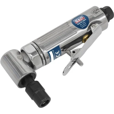 ManoManoGeneral description One-handed 90° angle die grinder with aluminium body and trigger with safety catch. The grinder is designed for ease of use and safety, featuring a fitted safety trigger to prevent inadvertent operation. Technical specifications Model No.: SA674 Air Consumption: 4ft³/min Air Inlet Size: 1/4" BSP Operating Pressure: 90psi Chuck accepts grinding points with Ø6mm shanks Compatibility and accessories Supplied with chuck spanners Other information