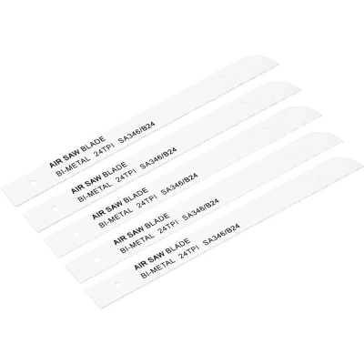 • HSS Air saw blades suitable for Model No. SA346.• Supplied in a pack of five.HSS Air saw blades suitable for Model No. SA346. Supplied in a pack of five.• HSS Air saw blades suitable for Model No. SA346. • Supplied in a pack of five. • Model No. SA346/B24Technical Specification:Application(s): SA346Blade Pitch: 24tpiNett Weight: 0.04kgPack Qty: 5Dimensions: Length: 10mm x Height: 235mmWeight: 0.045KgWarranty: Consumable