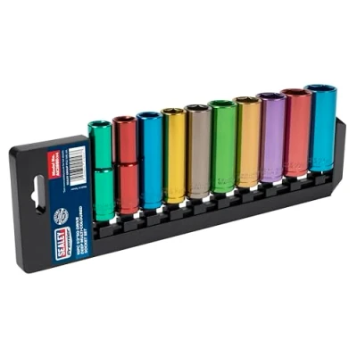 Sealey Ak288D Multi Coloured Socket Set 10Pc 1/2In Sq Drive 6Pt Deep Metric