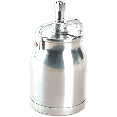 ManoManoGeneral description 1L aluminium paint pot with a cam-action lid, designed for efficient paint application. Technical specifications Capacity: 1L Material: Aluminium Thread size: 3/8"BSPP Compatibility and accessories Compatible with most suction feed spray guns.