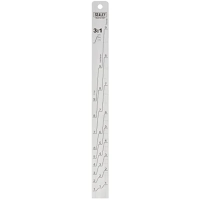 MULTI PURPOSE - Ideal tool for measuring correct ratios as well as stirring. DOUBLE-SIDE DESIGN - Has both 1:1 and 3:1 ratios. STORAGE - Stamped hole at top for convenient storage. SIZE - 350 x 30 x 2mm. FROM A REPUTABLE UK COMPANY – Founded in 1978, Sealey is a large family run business with a vast product range. Trusted by professionals, all Sealey products are thoroughly tested and backed by unrivalled aftersales service.