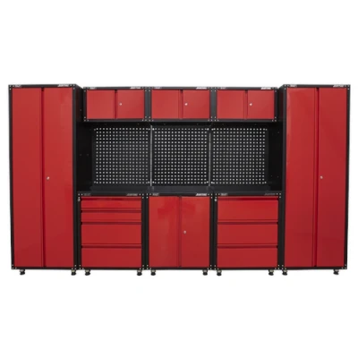 This cabinet system is robustly constructed to withstand daily use, making it suitable for various environments, including workshops, garages, and commercial spaces. The heavy-duty nature of the units means that extra assistance is recommended at the delivery point to ensure safe handling. Each component is designed for durability, ensuring that these cabinets can support a significant amount of weight while maintaining structure integrity.