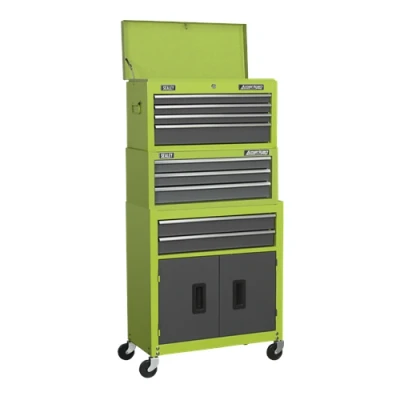 Sealey American Pro Topchest, Mid Box & Rollcab 9 Drawer Stack Hi Vis Green