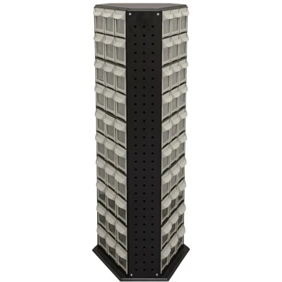 AmazonFREESTANDING - Freestanding rotating parts storage system featuring 90 small parts bins. ORGANISED - Ideal to keep small parts and fixings organised in workshops or stores. ROTATING - Fitted with roller bearings allowing 360° movement. PEGBOARD - Constructed with pegboard panels for extra storage. DIMENSIONS - (W x D x H): 450 x 520 x 1280mm.