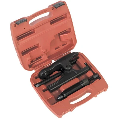 The heavy-duty ball joint splitter is an essential tool designed specifically for use with commercial vehicles. Its robust construction ensures durability and efficiency, making it ideal for both professional mechanics and automotive enthusiasts. This versatile tool can be operated manually or with the assist of a 10-tonne hydraulic ram, which is included with the package.