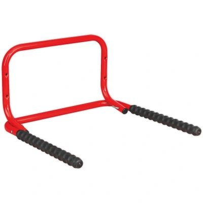 ManoManoGeneral description Sealey Folding Bicycle Rack is a wall-mounted storage solution designed to hold up to two bicycles, making it ideal for saving space in your garage or home. The arms of the rack fold up when not in use, allowing for compact storage. Technical specifications Model No.: BS7 Supports up to two bicycles Maximum weight capacity: 40 kg EAN: 5024209619042 Other information