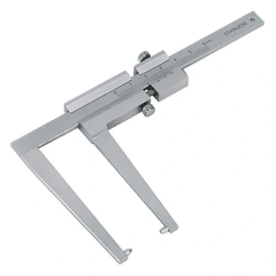 ManoManoGeneral description Sealey Brake Disc Caliper 0-50mm is a stainless steel caliper designed for accurate measurement of brake disc thickness. Its floating jaw assembly allows for easy removal from the disc while retaining the measurement reading. The caliper features a metric scale with 0.1mm graduations and is supplied in a convenient storage case. Technical specifications Model No.: VS056 Nett Weight: 0.22 kg Measurement Range: 0-50 mm Graduations: 0.1 mm Other information
