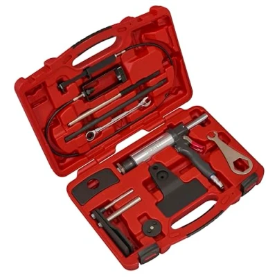 AmazonVERSATILE DESIGN – Used for pushing back brake pistons and removal/installation of hose clips. PNEUMATIC - Wind-back tool suitable for left or right-hand wind-back operations. SUITABLE - For push-back and wind-back brake pistons. LONG REACH FLEXIBLE CABLE- Designed to reach awkward-positioned hose clips. KIT INCLUDES – 2-pin magnetic adaptor for use with interchangeable brake adaptor plates, thrust pin, one and two brake piston spreaders, thrust bolt, 10mm ratchet spanner, locking nut spanner and hose clip attachment. SUPPLIED IN A STORAGE CASE – Keeps everything in one convenient place., Weight: 22.0462262 pounds, Manufacturer: Sealey
