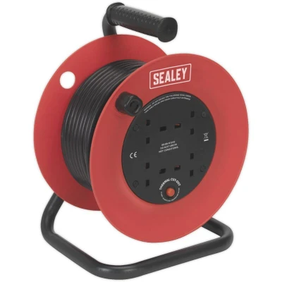 Sealey Cable Reel 25m 4 x 230V 1.5mm² Heavy Duty Thermal Trip