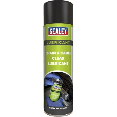 ManoManoGeneral description Sealey Chain & Cable Clear Lubricant is a versatile lubricant designed for use on wire ropes, chains, cables, hinges, springs, and slides. Its anti-fling formula makes it particularly suitable for motorcycle chains and forklift masts, providing effective lubrication while leaving a protective barrier to prevent corrosion. Technical specifications Model No.: SCS017S Size: 500ml Colour: Clear Anti-corrosive properties Other information