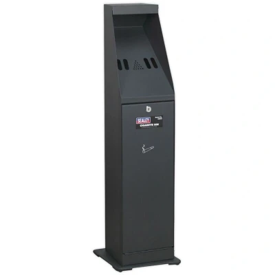 ManoManoGeneral description Sealey Cigarette Bin is a durable and practical solution for managing cigarette waste. It features a robust metal construction with a black powder-coated finish, making it suitable for outdoor use in building entrances and designated smoking areas. Technical specifications Material: Metal with black powder-coated body Dimensions (W x D x H): 240 x 240 x 880 mm Model No.: RCB07 EAN: 5054511105773 High-quality lock supplied with two keys Installation Easy installation process, allowing for quick setup in various locations. Usage Designed for use in building entrances and smoking areas, providing a convenient and safe place for disposing of cigarette butts. Other information