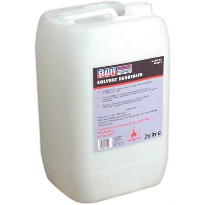 General description Degreasing solvent suitable for use in Sealey and other leading makes of parts cleaning tanks. Supplied in a 25L container. Technical specifications MPN: AK2501 EAN: 5024209555227 Size: 25L Other information