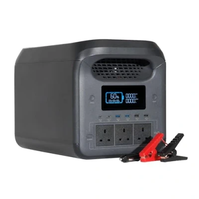 HIGH PERFORMANCE BATTERY - LiFePO4 battery can be charged and discharged over 2000 times while maintaining great performance. Can charge an average phone battery over 72 times or supply power to a car fridge for over 20hr (based on a 60W continuous draw). SIMULTANEOUS CHARGING - Nine different outlets mean you can connect to nine devices at once. Features three UK mains socket, four USB-A ports and two USB-C ports. WIFI CONTROL – Monitor information accurately such as remaining battery level and charging status, this smart power station provides performance data, remote control features and customisation options via the app. PORTABLE - Features the required inputs to support charging via solar panels (not included), so is perfect for long camping trips. Features carry handles that make lifting and transporting the power station easy. Supplied with battery clamps to charge a car battery. BACKUP POWER - Protect your devices from unexpected power outages by using it in UPS mode. When a power failure is detected the unit will switch over to battery in 10mS to minimise disruptions and keep your electronics going. An audible alarm will sound at 5% battery to help ensure you never unexpectedly run out of battery.
