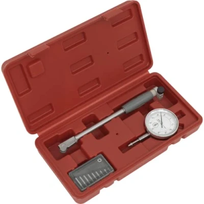 • Precision mechanism with ø58mm dial and locking rotating bezel, offering an accurate method of measuring a bore or detecting a taper or ovality.• Measuring Range: 18-35mm.• Will indicate the deviation from set size by up to 10mm with an accuracy of 0.01mm.• Probe body, dial indicator, anvil and spacer rings are also included.• Supplied in storage case.Precision mechanism with ø58mm dial and locking rotating bezel, offering an accurate method of measuring a bore or detecting a taper or ovality. Will indicate the deviation from set size by up to 10mm with an accuracy of 0.01mm. Probe body, dial indicator, anvils and spacer rings are also included. Supplied in storage case.• Precision mechanism with ø50mm dial and locking rotating bezel, offering an accurate method of measuring a bore or detecting a taper or ovality. • Measuring Range: 18-35mm. • Will indicate the deviation from set size by up to 5mm with an accuracy of 0.01mm. • Probe body, dial indicator, anvils and spacer rings are also included. • Supplied in wooden storage case. • Model No. DBG508Technical Specification:Maximum Deviation Measurement with Stem: 1mmMaximum Deviation Measurement, Gauge: 10mmNett Weight: 0.23kgRange: 18-35mmResolution: 0.01mmDimensions: Length: 45mm x Height: 140mmWeight: 0.5KgWarranty: 1 year