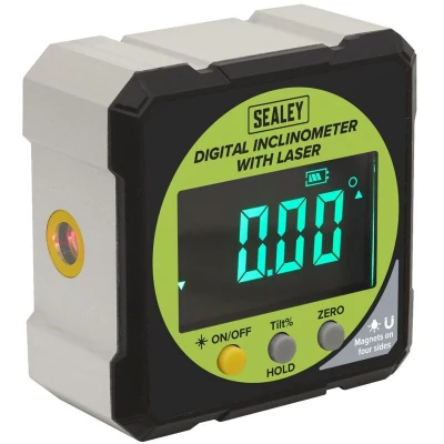 The Sealey Digital Inclinometer is a versatile and reliable tool designed for precise measurement of angles and tilt percentages on metal and other surfaces. With its advanced features, this digital inclinometer is equipped with a laser line and four magnetic sides, making it an essential instrument for various applications.