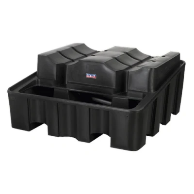 Constructed from high-density polyethylene, this robust storage solution is designed for the safe containment of two 205L drums. Engineered for durability and efficiency, the unit features a moulded design with a gradual decline, allowing for secure placement of the drums while minimizing the risk of spills or accidents.