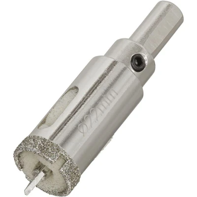 Electrical World• DURABLE - Electroplated diamond coated cutting edge allows precise chip-free cutting of glass, granite, marble, porcelain and ceramics.• COOLING - soaked sponge prolongs life of cutting edge by reducing heat build up.• DIVERSE - 45mm cutting depth makes this range ideal for plumbing and electrical installations.• DOMESTIC OR PROFESSIONAL - rounded hex shank means it will fit both handheld or pillar drill chucks.Technical SpecificationCutting Depth: 45mmDiameter: ø22mmNett Weight: 0.06kgTechnical Specification:Cutting Depth: 45mm Diameter: 22mmDimensions: Length: 50mm x Height: 120mmWeight: 0.07KgWarranty: Consumable