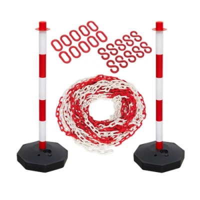 - RWPB01 - Red/White Post with Base (x2): These sturdy posts serve as the anchor points for the safety chain, creating a defined perimeter. Their striking red and white colours contribute to visibility and ensure that the area is clearly marked, deterring unauthorized entry and minimizing risks.