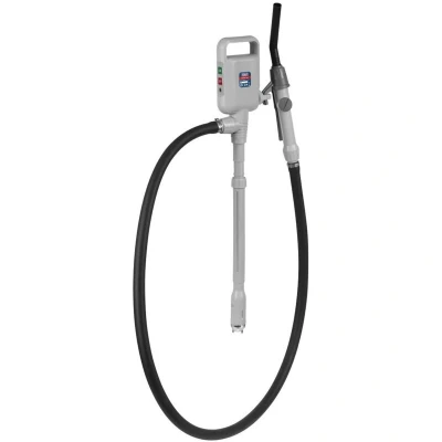 General description For use with jerry cans or containers to transfer diesel and other liquids easily. This Sealey Fluid Transfer Pump is designed for outdoor use, featuring rainproof separate On/Off buttons and an LED light for convenience. Technical specifications Powered by 2 x D size batteries (not included) Delivery volume: 9L/min Adjustable suction pipe extends from 380mm to 520mm Suction end diameter: 32mm Discharge hose: 1m, reinforced, oil and flame resistant Other information Not for use with petrol, kerosene, or other flammable liquids