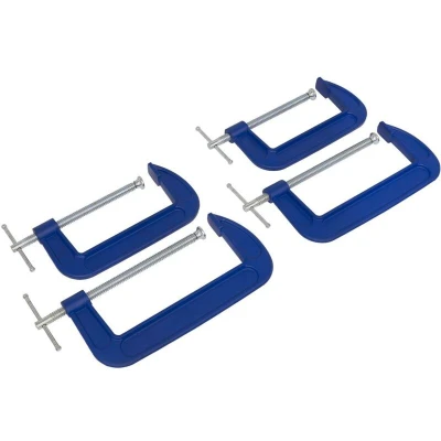 ManoManoGeneral description Sealey G-Clamp Set includes four pieces: two 150mm G-Clamps (Model No. AK6006) and two 200mm G-Clamps (Model No. AK6008). This set is designed for various clamping applications, providing reliable performance and durability. Technical specifications Model No.: AK6006SET Includes: 2 x 150mm G-Clamps (AK6006) Includes: 2 x 200mm G-Clamps (AK6008) Body material: Forged Other information