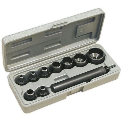 ManoManoGeneral description Sealey Gasket Punch Set includes a carbon steel body with a spring-loaded centering pin and nine dies, making it ideal for cutting gasket material, cork, or leather. The set is conveniently supplied in a storage case. Technical specifications Material: Carbon steel Model No.: AK709 Number of dies: 9 Supplied in storage case Other information