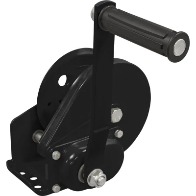 General description The Sealey GWE1200B Geared Hand Winch is designed for general and recovery operations, featuring a robust construction with a hardened steel gear and a heavy plate chassis. It includes an automatic brake system that ensures safety by requiring a minimum force of 25kg to prevent handle kickback and securely hold the load in position. This winch is suitable for various applications, including loading boats, heavy lawn equipment, and trailering. Technical specifications Capacity: 540kg Handle Length: 200mm Hub Diameter: Ø52mm Gear Ratio: 4.2:1 Model No.: GWE1200B Other information Supplied with empty drum Fully closed gearbox