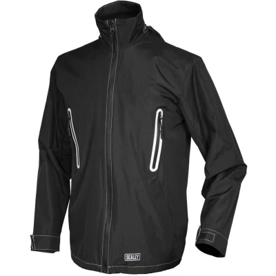 ManoManoGeneral description Sealey 5V Heated Rain Jacket in Small size is a water-resistant jacket designed for comfort and warmth. It features three carbon fibre heating elements strategically placed in the back and on each side of the chest, providing effective heat distribution. Technical specifications Model No.: WPHJ01 Size: Small Heating elements: Three carbon fibre elements Power bank: Not included, recommended 2A output for optimum use EAN: 5054511755749 Usage The jacket offers three different heat modes, which can be easily controlled by a colour-changing button: Blue for Low, Green for Medium, and Red for High. This allows users to adjust the heat level according to their comfort needs. Other information