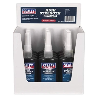 ManoManoGeneral description Sealey High Strength Retainer is specifically designed for cylindrical fitting parts. It cures effectively when confined in the absence of air within close fitting joints. Technical specifications Model No.: SCS638 Pack Quantity: 12 Size: 50ml Bottle EAN: 5054511062137 Other information