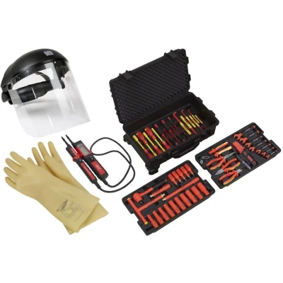 Package includes; Model No. - Description EV18 - Arc Flash Face Shield 1000V PPHY - High Voltage CAT IV Tester for Hybrid/Electic Vehicles Premier Insulated Tool Kit 1/2""Sq Drive 1000V 49pc Electrician's Safety Gloves 1kV - Pair Please refer to individual Model No. for all specification.