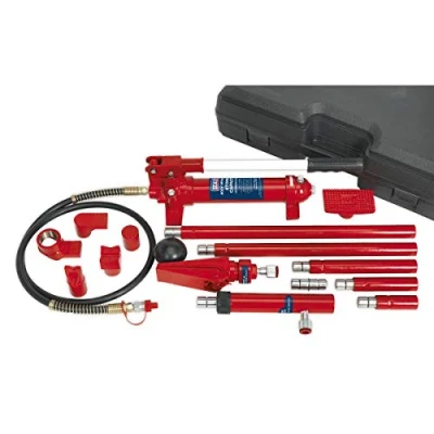 AmazonFeatures:Heavy gauge snap-together pipework and cast snap-together attachments compatible with most leading makes of snap-together equipment Supplied with hand operated pump, hose, hydraulic ram and carry case Height: 186Width: 600Length: 316, Weight: 41.5791826132 pounds, Manufacturer: Sealey