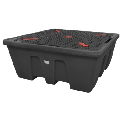 • Heavy-duty polyethylene IBC bund designed to catch and prevent spillages.• Features polyethylene centre support providing added strength and stability to load.• Manufactured with 1100L spill tray to comply with storage regulations.• Suitable for storage of 1 x IBC container.• Can be easily moved by forklifts and pallet trucks.• Max Load 2500kg.Heavy-duty polyethylene IBC bund designed to catch and prevent spillages. Features polyethylene centre support providing added strength and stability to load. Manufactured with 1100L spill tray to comply with storage regulations. Suitable for storage of 1 x IBC container. Can be easily moved by forklifts and pallet trucks. Max load 2500kg.• Heavy-duty polyethylene IBC bund designed to catch and prevent spillages. • Constructed with raised dispensing area with 10L sump. • Features polyethylene centre support providing added strength and stability to load. • Manufactured with 1100L spill tray to comply with storage regulations. • Suitable for storage of 1 x IBC container. • Can be easily moved by forklifts and pallet trucks. • This item is heavy. Extra assistance must be provided at the delivery point to help its safe delivery. • Model No. DRP24 *This item is delivered direct from our factory. Delivery charges may apply. Contact our sales department for more details.Technical Specification:Dimensions (W x D x H): 1660 x 1670 x 710mmDrum Capacity: 1 x IBCNett Weight: 86kgTotal Sump Capacity: 1260LDimensions: Length: 1670mm x Height: 710mmWeight: 82KgWarranty: 1 year