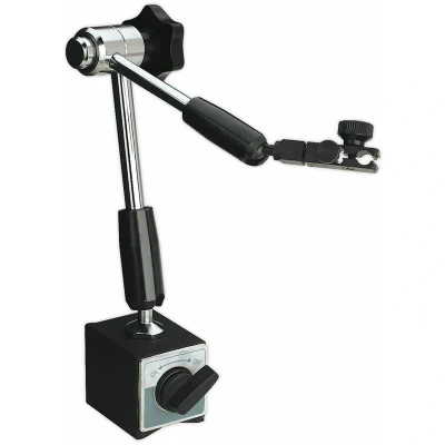 ManoManoGeneral description Sealey Magnetic Stand without Indicator Heavy-Duty AK960 is designed for precision and flexibility in various machining, design, and inspection tasks. It features a magnetic precision ground base and an articulated arm with a rotary lock for secure positioning. The stand includes a combination dial and scribing clamp with fine adjustment control, making it adaptable for calibrating and measuring. Technical specifications Model: AK960 EAN: 5024209274852 Other information