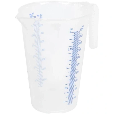 ManoManoGeneral description Translucent polypropylene measuring jug with an easy-to-read scale for accurate measurement (±1%). Technical specifications Material: Translucent polypropylene Capacity: 2L Model No.: JT2000 Nett Weight: 0.17kg Measurement accuracy: ±1% Other information