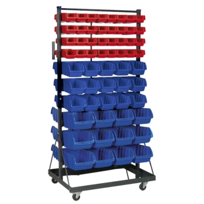 This mobile storage solution is designed to enhance organization and efficiency in any workspace. Featuring a robust construction of powder-coated steel, the racking is built to withstand the rigours of daily use while maintaining an aesthetically pleasing finish. It is thoughtfully designed with composite storage bins positioned evenly on both sides, allowing for easy access and visibility of contents.