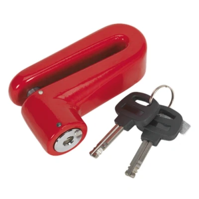 ManoManoGeneral description Sealey Motorcycle Disc Brake Lock 10mm is designed to provide enhanced security for your motorcycle. It features a hardened locking pin and an impact-resistant die-cast body, ensuring durability and reliability. The bright color serves as a visible reminder that the lock is attached to the bike, helping to prevent accidental riding with the lock still in place. Technical specifications Pin Diameter: Ø10mm Throat Depth from Centre of Pin: 67mm Nett Weight: 0.62kg Model No.: DL503 EAN: 5051747909618 Compatibility and accessories Supplied with two keys Includes a storage pouch Other information