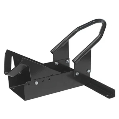 The motorcycle wheel chock is designed for maximum stability and security, making it an essential accessory for motorcycle enthusiasts. This chock features an adjustable pivoting wheel guide that effectively secures the rear wheel within the chock, ensuring that your bike remains safely in place while it is being stored or worked on.