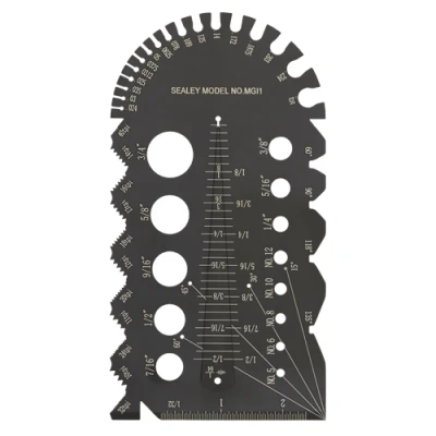 • Stainless steel Imperial multifunction thread/pitch identification gauge.• Pitches: 10, 11, 12, 13, 14, 16, 18, 20, 24, 32, 40 (tpi).• Bolt Screw Diameters: No.5, No.6, No.8, No.10, No.12, 1/4", 5/16", 3/8", 7/16", 1/2", 9/16", 5/8", 3/4".• Wire Gauge: 0.024", 0.03", 0.035", 0.025", 0.0312", 0.0375", 0.05", 0.0625", 0.078", 0.109", 0.125", 0.14", 0.172", 0.1875", 0.203", 0.234", 0.25".• Square: 15°, 30°, 45°, 60°, 90°.• Drill Point Angle: 60°, 90°, 118°, 135°.• Bolt screw length: 0-2-3/8"• Tap/Drill Recommendation: #2-3/4"• Check the thickness of washers and diameter of electric wire.Stainless steel multifunction thread/pitch identification gauge. Easily identify the size of bolt, drill bit or tap that is required. Check the thickness of washers and diameter of electric wire. Use as a set square and ruler.• Stainless steel imperial multifunction thread/pitch identification gauge. • Pitches: 10, 11, 12, 13, 14, 16, 18, 20, 24, 32, 40 (tpi). • Bolt Screw Diameters: No.5, No.6, No.8, No.10, No.12, 1/4", 5/16", 3/8", 7/16", 1/2", 9/16", 5/8", 3/4". • Wire Gauge: 0.024", 0.03", 0.035", 0.025", 0.0312", 0.0375", 0.05", 0.0625", 0.078", 0.109", 0.125", 0.14", 0.172", 0.1875", 0.203", 0.234", 0.25". • Square: 15°, 30°, 45°, 60°, 90°. • Drill Point Angle: 60°, 90°, 118°, 135°. • Bolt screw length: 0-2-3/8". • Tap/Drill Recommendation: #2-3/4". • Checks the thickness of washers and diameter of electric wire. • Model No. MGI1Technical Specification:Nett Weight: 137.5gBolt Screw Diameters: No.5, No.6, No.8, No.10, No.12, 1/4”, 5/16”, 3/8”, 7/16”, 1/2”, 9/16”, 5/8”, 3/4”Bolt Screw Length: 0-2-3/8"Drill Point Angle: 60°, 90°, 118°, 135°Pitches: 10, 11, 12, 13, 14, 16, 18, 20, 24, 32, 40 (tpi)Square: 15°-30°-45°-60°-90°Tap/Drill Recommendation: #2-3/4"Wire Gauge: 0.024", 0.03", 0.035", 0.025", 0.0312", 0.0375", 0.05", 0.0625", 0.078", 0.109", 0.125", 0.14", 0.172", 0.1875", 0.203", 0.234", 0.25"Dimensions: Length: 20mm x Height: 248mmWeight: 0.175KgWarranty: 1 year